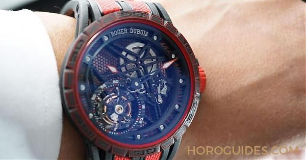 『霸氣』就是每次ROGER DUBUIS發表給人最強烈的印象,頂著獨立製錶大師的名號,再加上集團資源大力挹注,更以全機芯皆通過日內瓦印記獨樹一格。(雖然今年好像有點自己打破自己的規則,Excalibur 36女錶印記去哪了?)不過大膽的設計與華麗的作風,真的是奪人眼球。過去總是以貴金屬、鈦合金或是不鏽鋼造錶的RD,去年首度切入了近來大熱的碳纖維材質,拿來做大尺寸錶款可是輕得多,錶殼也更耐磨。不過對RD來說,只來拿做錶殼實在是小CASE,一般的碳纖維也沒什麼了不起,今年推出的這款Excalibur Spider Full Carbon,顧名思義就是全碳造錶。運用的是T700碳纖維,比常見的碳纖維結構還更薄更勻稱,重量又少30%孔隙也更密,更重要的是這次夾板、橋板和陀飛輪框架也都全碳打造。