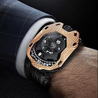 URWERK的共同創辦人暨設計師Martin Frei,也承認自己沉迷於黃金的魅力:「我心裡面總有一個小小的聲音,提醒我我有多麼喜愛這種金屬。即使科技不斷推新,時尚流行趨勢日新月異,新功能不斷研發,新穎材質,黃金就是黃金,它恆久存在,是讓我感到振奮的金屬。」這位設計師如此迷戀於這種永恆、永無缺憾的金屬,也啟發出這款全新UR-105 Raging Gold 錶款的誕生。獨特圖案刻印的紅金錶層,成為鈦質錶殼上的錶圈設計。