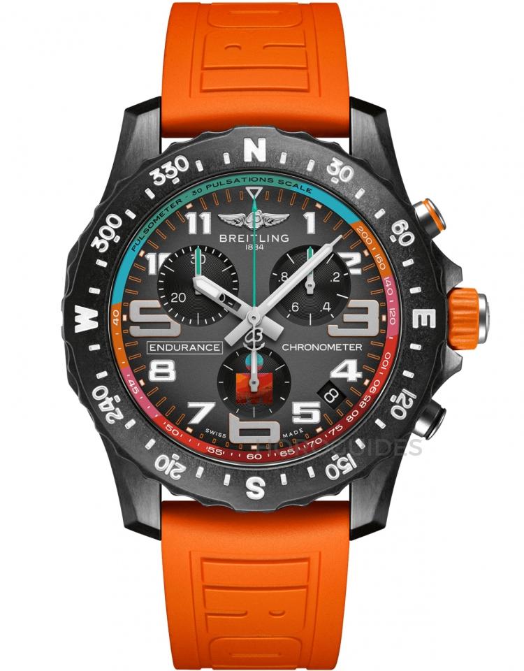 BREITLING與鐵人三項比賽合作推出此款IRONMAN® 70.3世錦賽特別版,錶款內圈的脈搏計刻度以及6時位置的鐵人三項logo,特別採用IRONMAN® 70.3世錦賽設計和配色構思,含蓄內斂的漸層彩虹色細節搭配橘色橡膠錶帶,展現充滿活力的風格。錶殼同樣採用系列常用的Breitlight®材質,搭載SuperQuartz™ 82型機芯,限量200只,僅在品牌官網銷售。