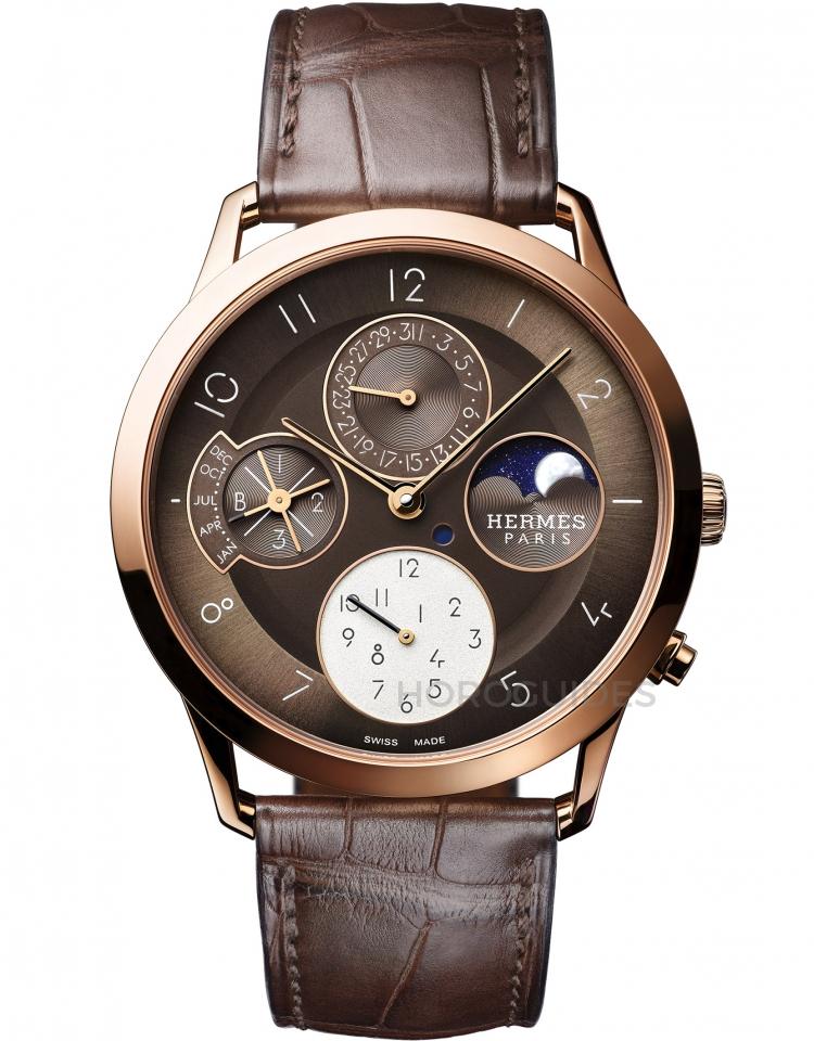 玫瑰金棕面,Hermès Slim d’Hermès Quantième Perpétuel萬年曆腕錶延伸新作亮相