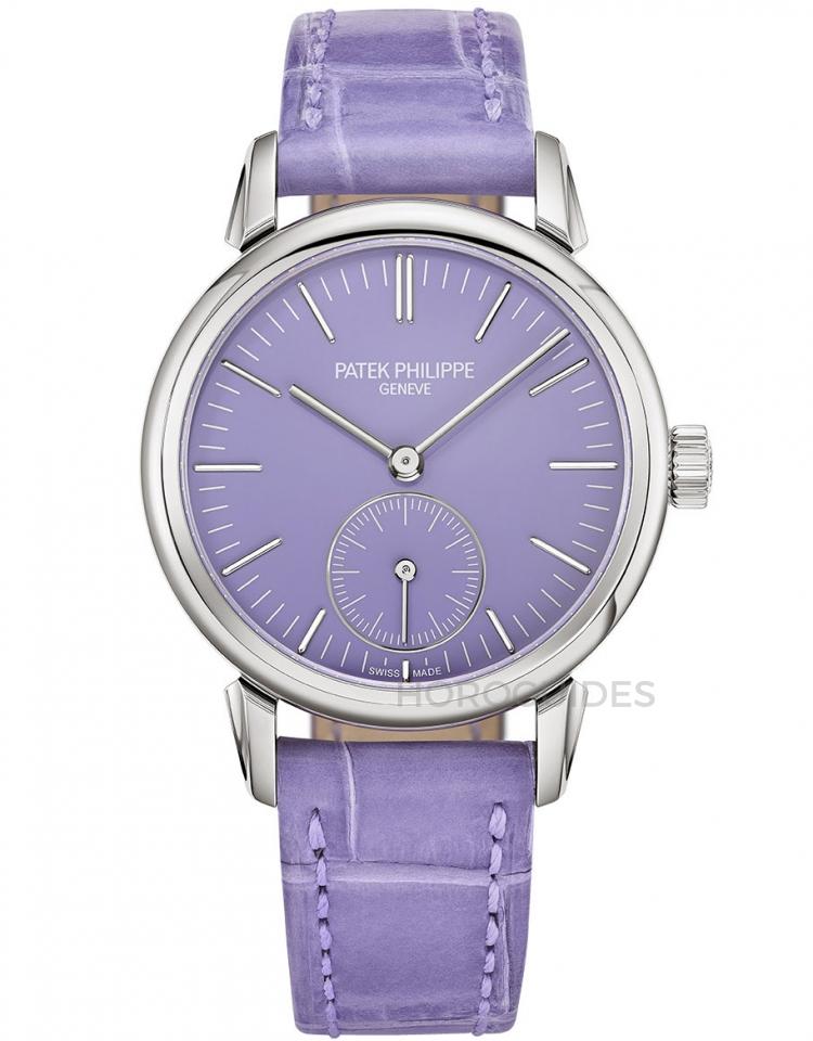 百達翡麗2023東京鐘錶藝術大展推出的特別款式中,最受藏家關注的是白金材質的這兩款錶。其中包括亮藍漆面盤、錶徑36mm的6127G-010和淡紫色面盤、錶徑31mm的7127G-010。這兩款錶的尺寸較小,對於亞洲市場的男性和女性佩戴來說可能並不成問題。面盤的配色非常鮮豔,對於亞洲市場偏向保守、內斂的穿著風格來說,這樣一款亮色的腕錶更加適合。 此外,品牌以蝴蝶翅膀為靈感設計了特殊的Calatrava雙層錶耳。兩款錶都配備了215 PS機芯,限量生產各400只,其中300只是成套販售,另外100只單獨銷售。