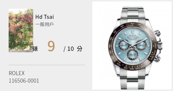 2013年Daytona五十週年推出的116506,採用勞力士不常使用的鉑金錶殼、鍊帶,以及第一次使用的栗啡色陶瓷錶圈,上手「份量」頗足。錶款搭配目前只有出現在鉑金材質的冰藍色錶盤,因此即使錶殼成色類似不鏽鋼,但是行家一看就知道身價非比一般,屬於內行人的低調奢華。不過畢竟要價不斐、數量也非常有限,屬於Fans的聖杯級錶款。