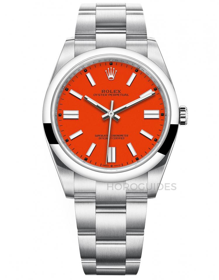 2020年推出的 OP 41mm 系列一口氣推出四種色彩繽紛的漆面質地面盤款式,其中Tiffany Blue可說是詢問度最高的款式,其次為黃色、綠色,並且採用3230機芯,對Oyster Perpetual系列來說是非常大的升級,在價格上也顯得更親民實惠,一推出就獲得市場歡迎。