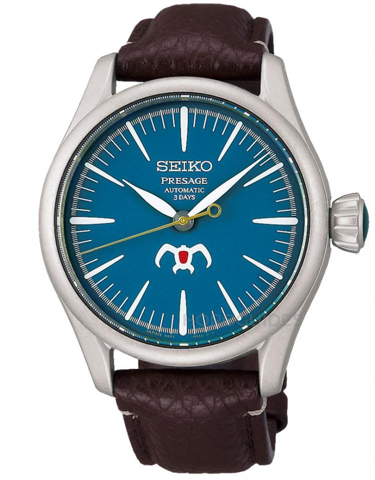 繼「飛天紅豬俠」SPB441J1、「天空之城」SPB215J1之後,SEIKO再次推出與吉卜力工作室連乘的限量錶款。此次的Presage Craftsmanship系列SPB437J1以「風之谷」為錶款主題,藍色琺瑯錶盤以及六點鐘位置的圖騰,靈感來自風之谷公主娜烏西卡穿著的衣服;6R51機芯配有金色擺陀,底蓋印有飛行帽圖樣,錶帶背面還有王蟲的鋼印圖案。價位秉持Presage工藝款式的入門級別,是吉卜力動畫fans會為之激動的款式。