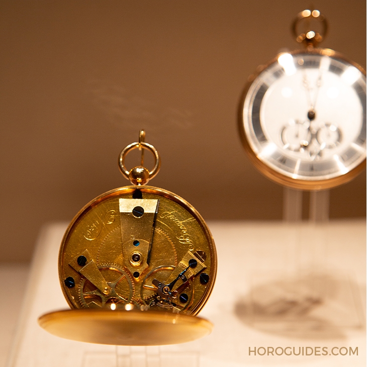 由寶璣大師製作,具降落傘防震機制的懷錶。在博物館中收藏的作品不限百達翡麗品牌,更涵括許多知名鐘錶大師的作品。