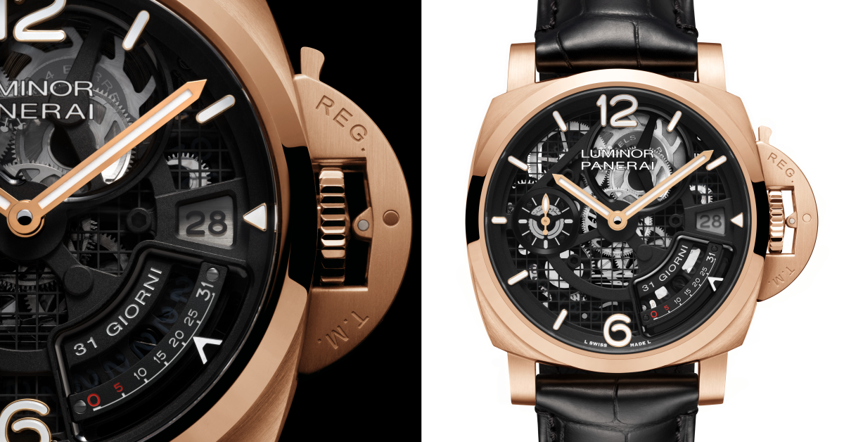 Luminor 31 Giorni PAM01631,PANERAI Goldtech™材質/P.2031/S手動上鍊機芯/時、分、小秒、日期顯示/動力儲存顯示/藍寶石水晶鏡面、透明底蓋/防水100米/錶徑44mm/限量200只