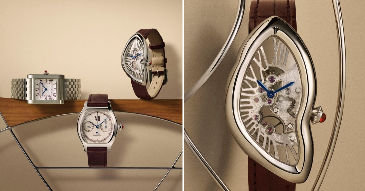誕生於1967年的Crash腕錶,以扭曲不對稱錶殼聞名,透過超現實主義的造型語彙,展現自由奔放的創作精神。今年全新發表的Privé Les Opus Crash鏤空腕錶,搭載卡地亞1967 MC型工作坊精製手動上鍊機芯,這枚專為Crash打造的機芯由142個部件組成,表面局部飾以手工錘紋,鏤空機芯橋板化為放射狀排列的羅馬數字時標,與錶殼輪廓完美契合。