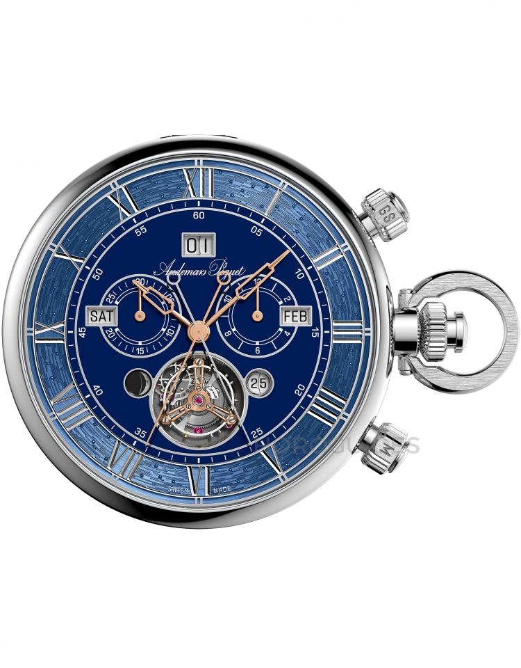 愛彼最新發表的150週年Heritage傳奇萬象曆懷錶,融匯大小自鳴、超問三問報時、飛行陀飛輪、半格里高利萬年曆、飛返計時、追針計時等47項功能,且錶徑僅50毫米、厚度23.4毫米,確保懷錶體積可以真正被收放在口袋內,融合傳統、創新與現代便攜性,奠定以真實佩戴為體驗核心的製錶概念。懷錶為手工雕飾鉑金錶殼,主錶盤以18K白金製作並融合藍半透明大明火琺瑯,手工雕飾等多項工藝;錶背的萬象曆以360°全景式整合世界各地的曆法與全球9大傳統文化節慶,成為連結浩瀚宇宙與人類多元文化傳統的紐帶。所搭載的超複雜1150機芯,全面重塑所有啟動機制,包括錶冠按鈕、校正器等,整合複雜功能的操作,從而適配懷錶的小巧尺寸;搭配手工製作鉑金錶鏈,限量僅兩只,在開拓傳統機械結構領域的同時,完美融合頂尖技術與精緻美學。