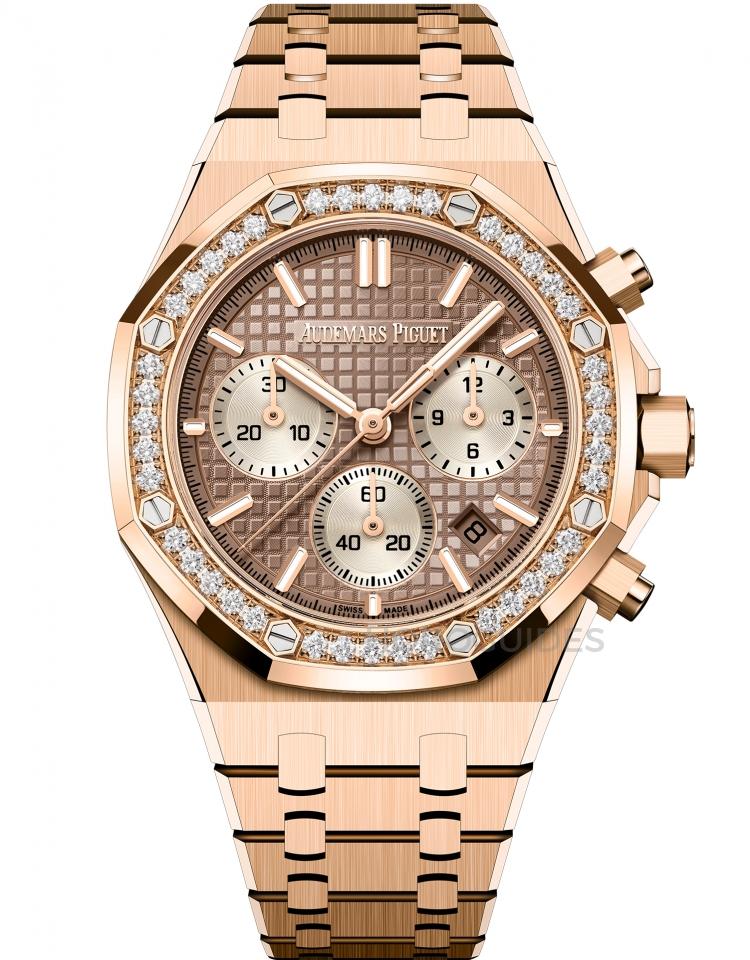 繼錶徑41毫米的Royal Oak計時碼錶在2022年採用自製4401機芯,2026年愛彼將自製機芯版圖拓展至錶徑38毫米,以全新6401自動上鍊計時機芯取代2385機芯,進入由愛彼自製、整合與調校的嶄新階段。6401機芯歷時五年研發,採用一體整合式計時結構,並針對垂直離合系統申請專利,大幅簡化零件配置,同時提升操作順暢度與長期穩定性。機芯直徑27毫米、厚度5.7毫米,振頻28,800vph,動儲55小時,備有瞬跳日期功能。新舊款式在30分鐘計分盤以及12小時計時盤的位置對調,6時位置小秒盤加上數字,統一整體識別;錶款搭配透明底蓋,同時是RO38毫米計時的首次透背。