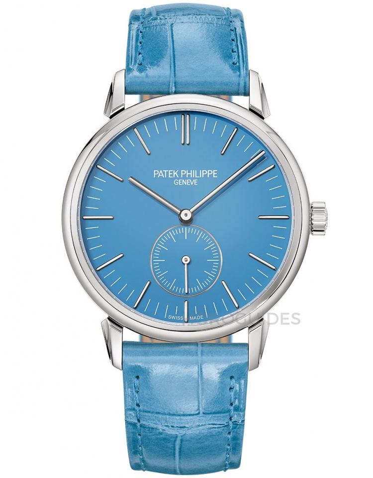 百達翡麗2023東京鐘錶藝術大展推出的特別款式中,最受藏家關注的是白金材質的這兩款錶。其中包括亮藍漆面盤、錶徑36mm的6127G-010和淡紫色面盤、錶徑31mm的7127G-010。這兩款錶的尺寸較小,對於亞洲市場的男性和女性佩戴來說可能並不成問題。面盤的配色非常鮮豔,對於亞洲市場偏向保守、內斂的穿著風格來說,這樣一款亮色的腕錶更加適合。 此外,品牌以蝴蝶翅膀為靈感設計了特殊的Calatrava雙層錶耳。兩款錶都配備了215 PS機芯,限量生產各400只,其中300只是成套販售,另外100只單獨銷售。