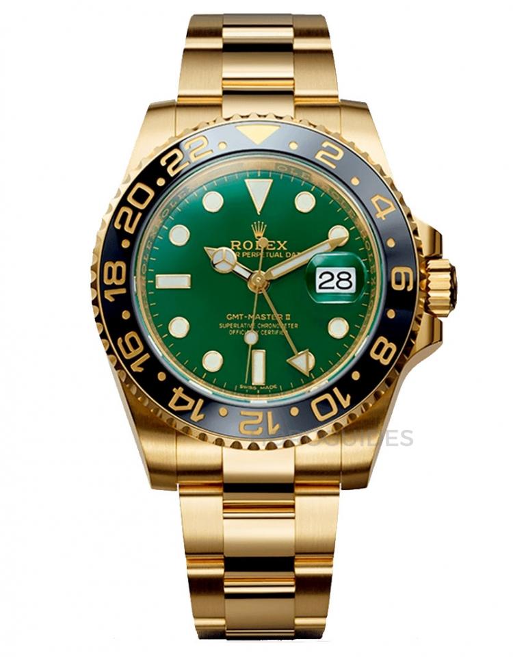 2005年適逢GMT-Master 50週年,勞力士推出了首款採用“Super Case”設計的GMT-Master II,因此錶殼具有更厚、更有稜角的比例等特色,另外也是第一次採用標誌性綠色錶盤搭配黃金材質錶殼、首次用上Cerachrom陶瓷錶圈,從此開啟了運動錶陶瓷圈的風潮。錶徑為40毫米,內部搭載3186機芯。由於是相對少數採用勞力士品牌綠色的款式,因此備受實力藏家喜愛。