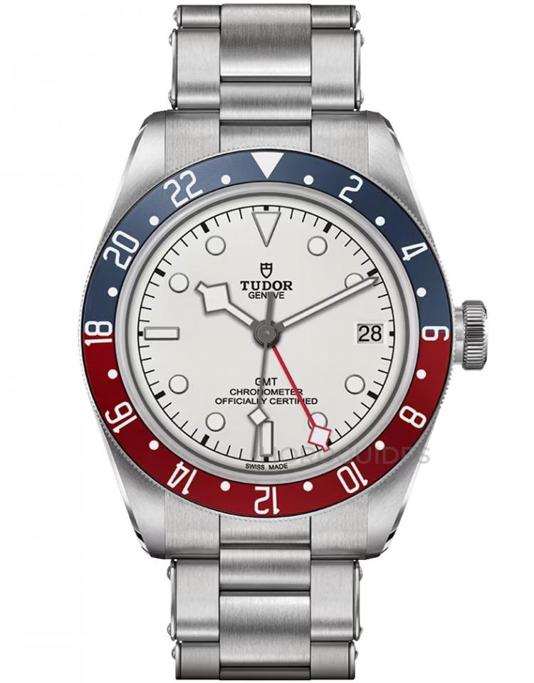 Black Bay GMT紅藍雙色百事圈,推出全新蛋白色錶面,不同於純白色調,這次的蛋白色經過電鍍加工,因此錶面呈現白灰色啞面質感,隨光線變化隱約閃現銀色光澤。回顧帝舵的Black Bay GMT功能在2018年推出,第一只款式就是紅藍百事圈,當時搭配的是黑色面盤,呼應同一年度勞力士剛好也推出新版GMT Master ll的紅藍陶瓷圈,因此被視為平民版勞力士百事圈,人氣爆棚。加上MT5652天文台認證矽游絲機芯,每日誤差僅在-2~+4秒之間,動儲70小時等等優質規格,實在吸引。時隔五年推出蛋白色面盤,不知錶迷們愛經典黑面多一些?還是新款蛋白面呢?