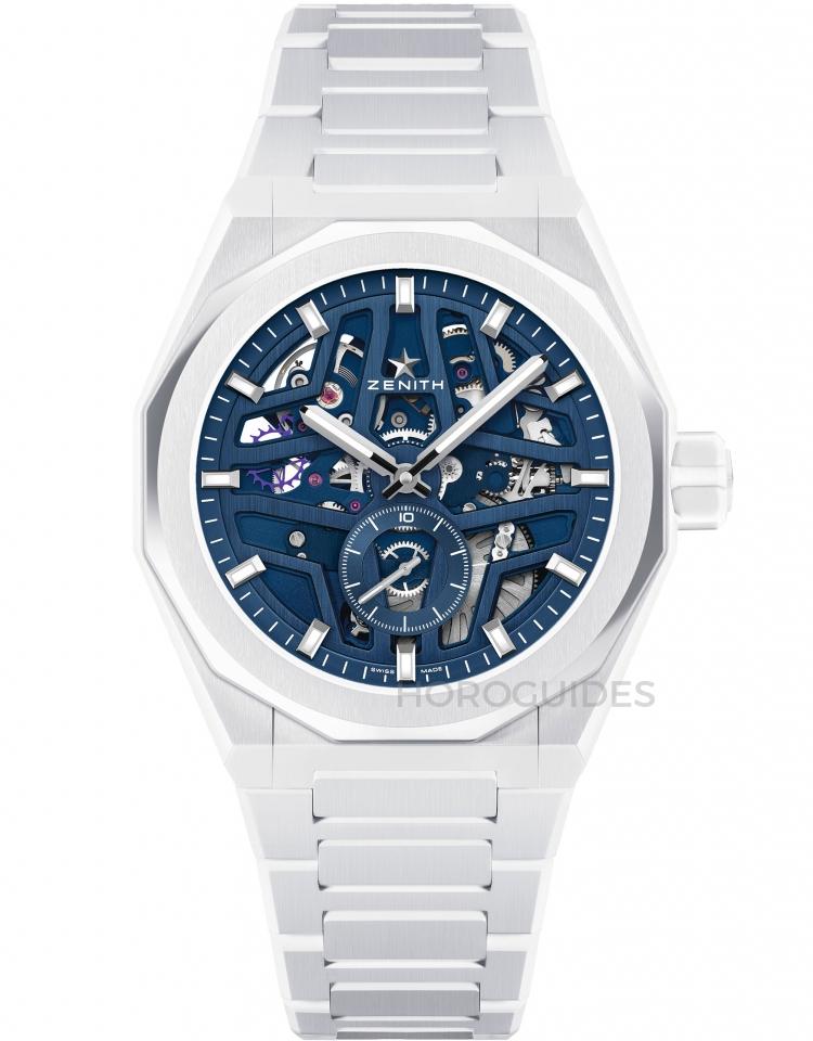 Zenith Defy Skyline White Ceramic Skeleton 以其獨特的白色陶瓷材質和藍色鏤空錶盤,為現代鐘錶設計增添了一抹夏日的清新風格。這款腕錶搭載高震頻El Primero 3620 SK機芯,具備1/10秒計時功能和55小時動力儲存,彰顯了技術與設計的完美結合。儘管鏤空效果不如其他高端鏤空錶款那般徹底,但其時尚外觀和實用性仍然贏得了不少青睞。對於鐘情於白色陶瓷的藏家而言,這款腕錶在市場上提供了一個相對實惠且具有吸引力的選擇。
