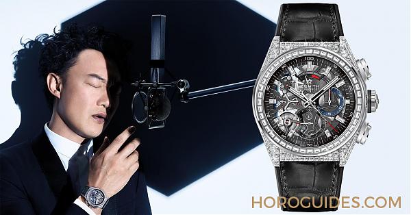 ZENITH對是次的合作隆重其事,特意拍攝一條切合陳奕迅及其音樂風格的廣告片。影片中「歌神」穿著一身俐落的黑色西裝,鏡頭前他專注地對著麥克風演唱,同時自信地展示著腕間的Defy腕錶,成為ZENITH全新紳士格調的最佳典範。「歌神」佩戴的Defy El Primero 21 Full Diamonds腕錶貴氣非凡,腕錶錶殼鑲嵌了288顆明亮式切割鑽石,錶盤的時標亦用上12顆鑽石綴飾,配搭黑色橡膠襯裡鱷魚皮錶帶,將尊貴與時尚把握手中。