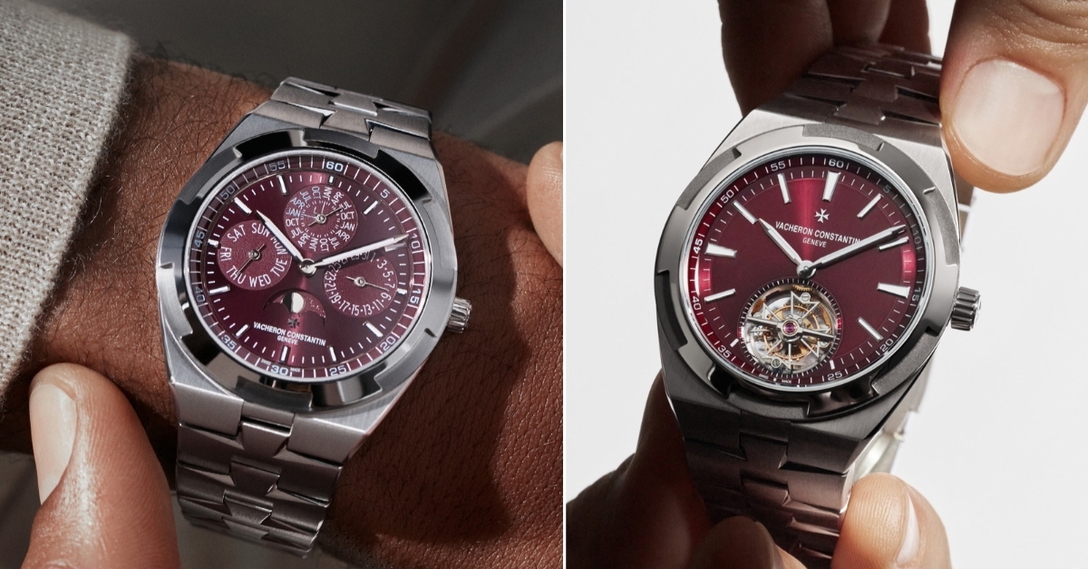 江詩丹頓Overseas罕見酒紅面盤現身|超薄萬年曆與鈦金屬陀飛輪全解析