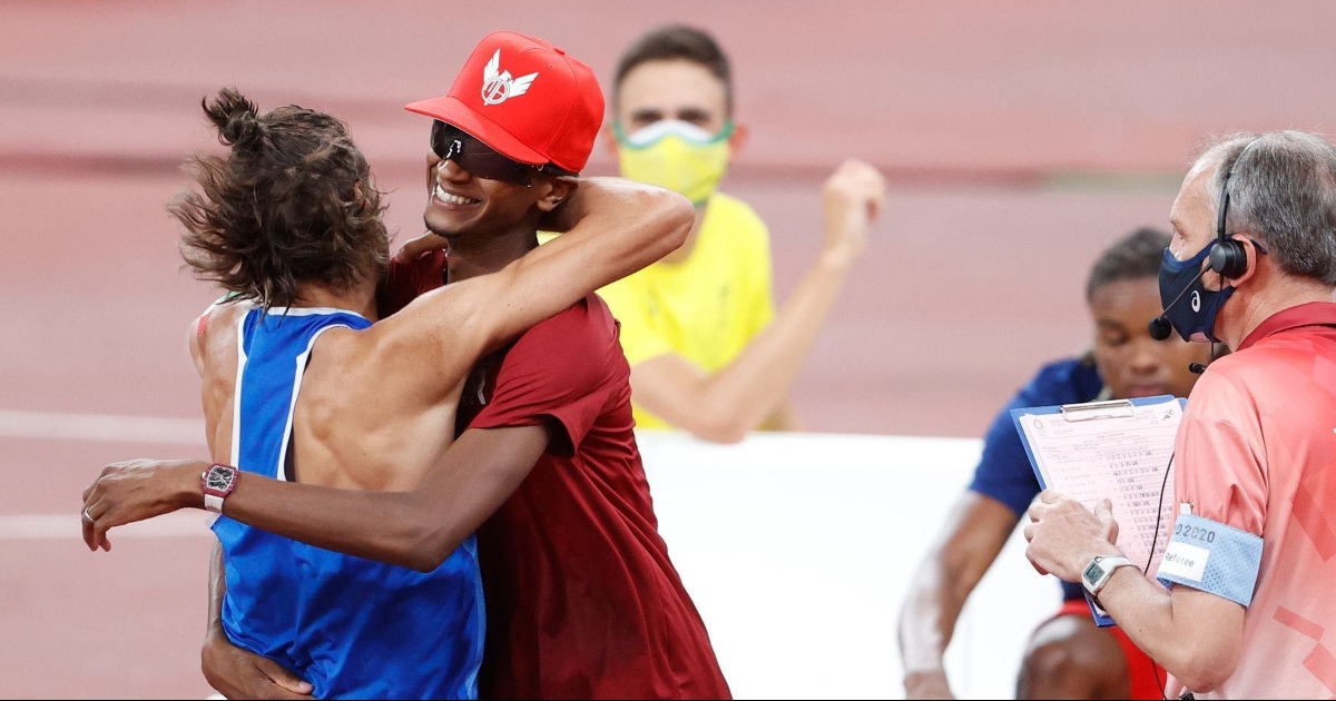 這是2020東京奧運最振奮人心的一刻之一!賽前被認為在男子跳高項目奪金贏面最大的Mutaz Essa Barshim,最後決戰時和來自義大利的對手Gianmarco Tamberi都跳過了2.37公尺,卻也雙雙在挑戰奧運紀錄的2.39公尺中跳了三次皆失敗,裁判原本要給他們加賽分出勝負的機會,他主動向裁判表示不加賽,和長期是勁敵也是好友的Tamberi共享金牌榮耀。兩個人激動擁抱的那幕,著實是很戲劇性的精彩瞬間。