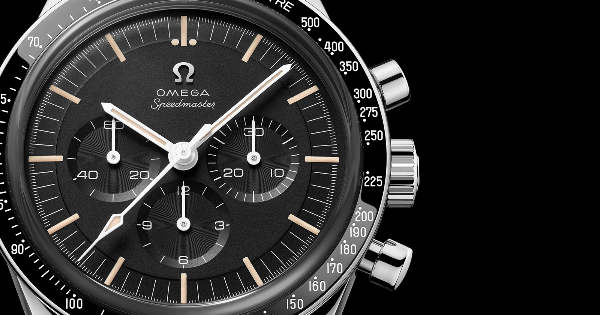 新款忠實復刻ST 105.003的設計,特色在於沒有錶冠護肩、蘑菇形計時按把、扁平的金屬三板帶、且沒有現代超霸錶的亮面拋光倒角,看起來沒那麼現代風、反倒有種紮實的穩重感。錶盤是傳統的黑面、搭配6點鐘位置舊版OMEGA Logo,時標以及指針的夜光塗料做得略帶泛黃色澤,帶出一點與錶款背景相呼應的歷史感,錶圈"dot over 90"的設計也獲得藏家關注。新添入的現代元素則是黑陶瓷材質的錶圈、以及嵌入白色琺瑯測速計刻度。