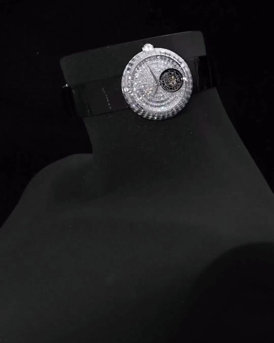 而其中最令人驚艷的細節之一,便是Rihanna所戴的Jacob and Co.鑽石腕錶。 這款價值670,000美元的腕錶,掛在Rihanna的脖子上, 當成貼頸的頸鍊佩。全錶以隱藏式鑲鑲嵌了368顆奢華耀眼的鑽石,配有飛行陀飛輪功能,讓這款限量18只的Watch Choker得到了絕佳的宣傳曝光。