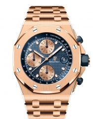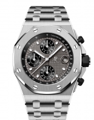 復刻自1993年問世的皇家橡樹Offshore離岸型計時碼錶,全新42毫米錶款的承襲經典離岸型計時碼錶的設計特徵,包括面盤鐫刻原始的「Petite Tapisserie」小型格紋裝飾圖案,色調採用初代的「雲夜藍50」,金屬立體「AP」字樣與全名logo都設於3點鐘位置,僅面盤位置略有調整。原汁原味重現當年的經典。