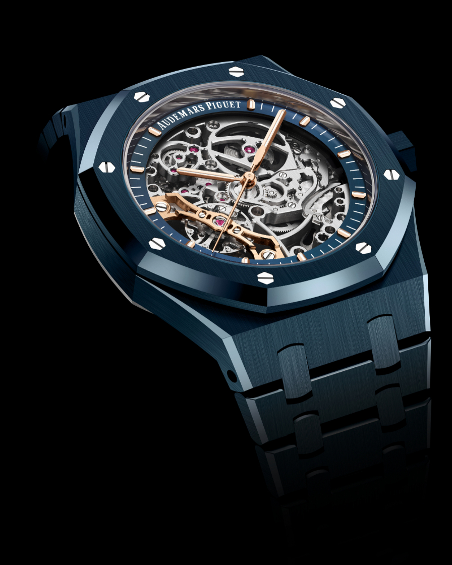 41mm的Royal Oak雙擺輪鏤空腕錶和42mm的Royal Oak Offshore自動上鍊計時碼錶上,都採用了單色設計,從錶殼、錶圈到錶鍊都完全由「雲夜藍50」色陶瓷打造,錶盤上同樣可見與之呼應的深藍色調。Royal Oak雙擺輪鏤空腕錶搭載3132⾃動上鍊機芯,配備愛彼於2016年獲得專利的雙擺輪裝置;Royal Oak Offshore自動上鍊計時碼錶搭載4404⼀體式⾃動上鍊計時機芯,配備導柱輪和飛返計時功能。