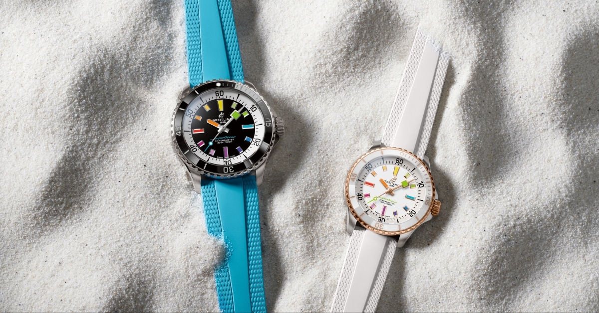 BREITLING百年靈今年在Wheels & Waves衝浪電單車節於比亞里茨(Biarritz)舉行期間,為Superocean超級海洋系列推出兩種全新設計,分別為色彩豐富的彩虹錶盤36及42mm自動腕錶,以及Super Diver 46mm的迷彩圖案錶盤深潛新款。新錶與《The Breitling Book of Surfing百年靈衝浪聖典》同步發佈,向世界各地衝浪者的熱情和豐富精彩的故事致敬。