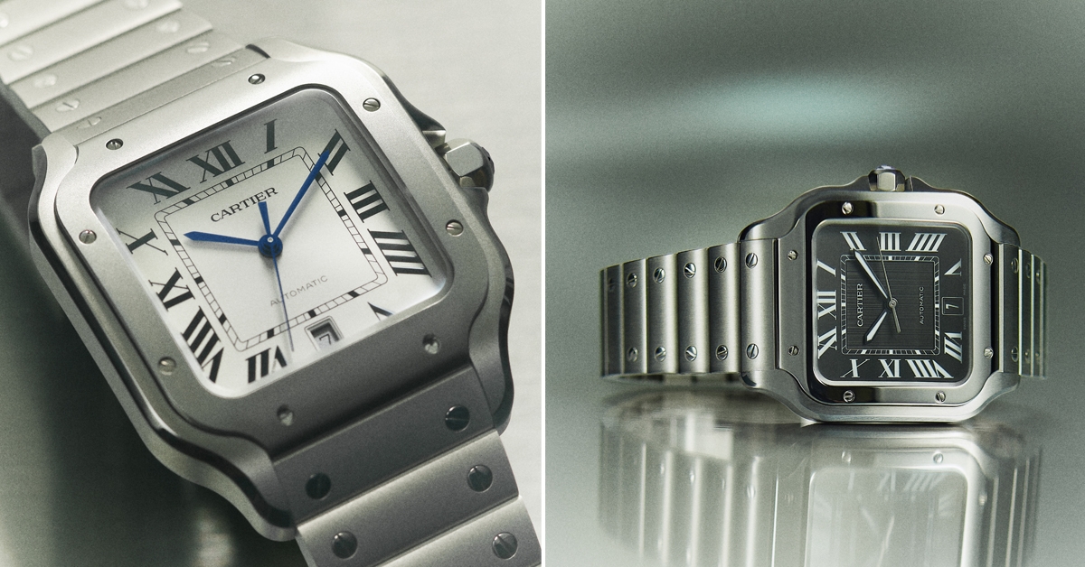 微噴砂鈦金屬錶殼、導入夜光效果|Santos de Cartier大型款2025年新作