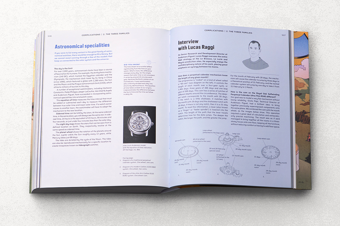愛彼歷史遺產與博物館總監Sébastian Vivas表示:「真希望在我初識製錶時就能讀到這本書。它不只是入門指南,而是陪伴探索時間世界的夥伴。」書中除了專業內容,也收錄不少趣味知識與趣聞軼事,例如形容美食與錶盤的詞彙竟有相似的語感,而「zapon」則是一種金屬表面防護塗層,並衍生作為塗上清漆這一工藝的動詞。