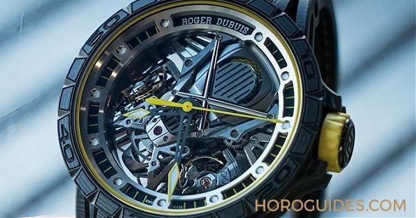 ROGER DUBUIS Pre-SIHH 2018率先曝光的Excalibur Aventador S 玫瑰金限量版(上圖)以及Excalibur Spider Pirelli鈦合金鏤空限量錶兩款新作(下圖)。